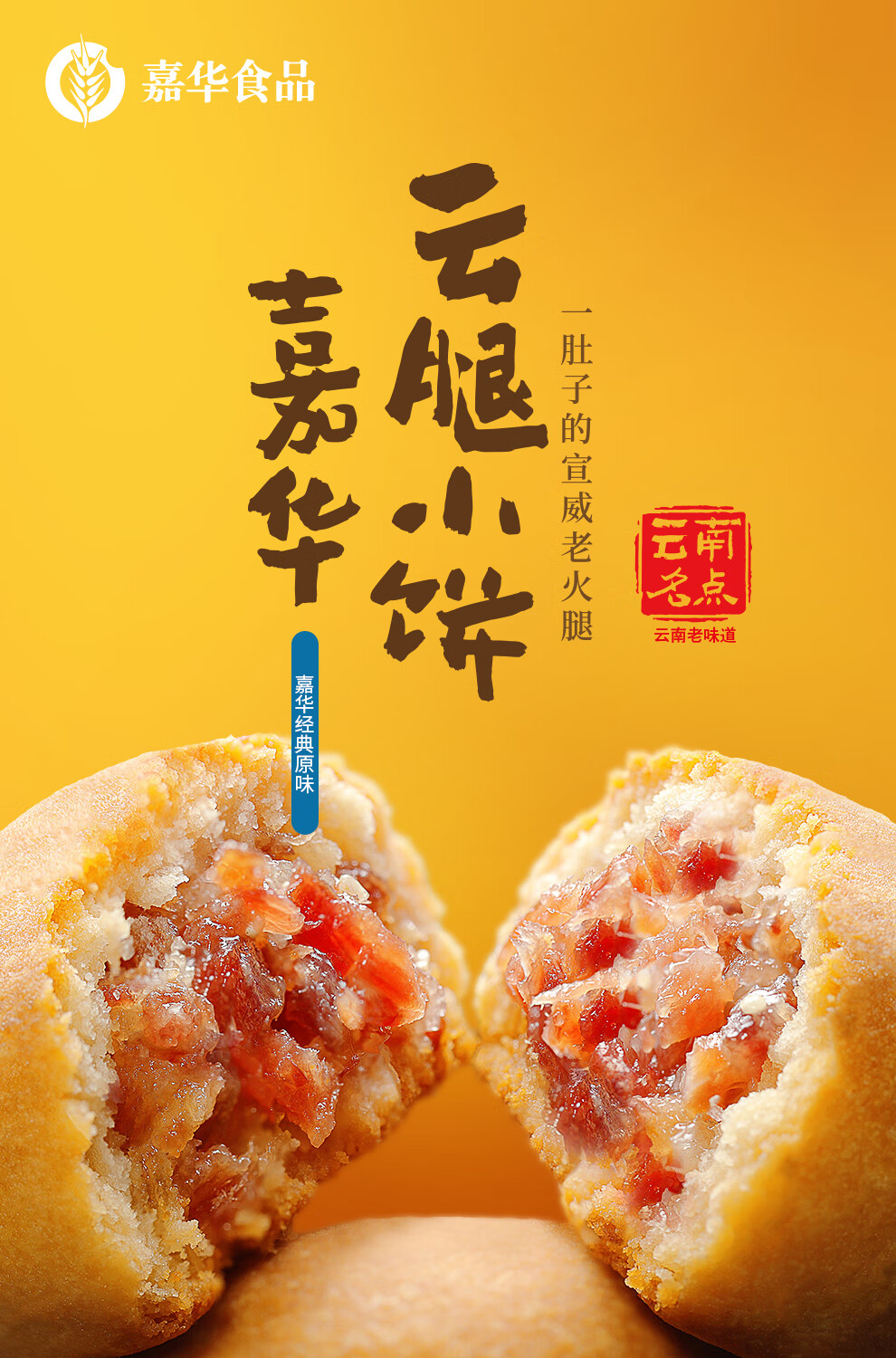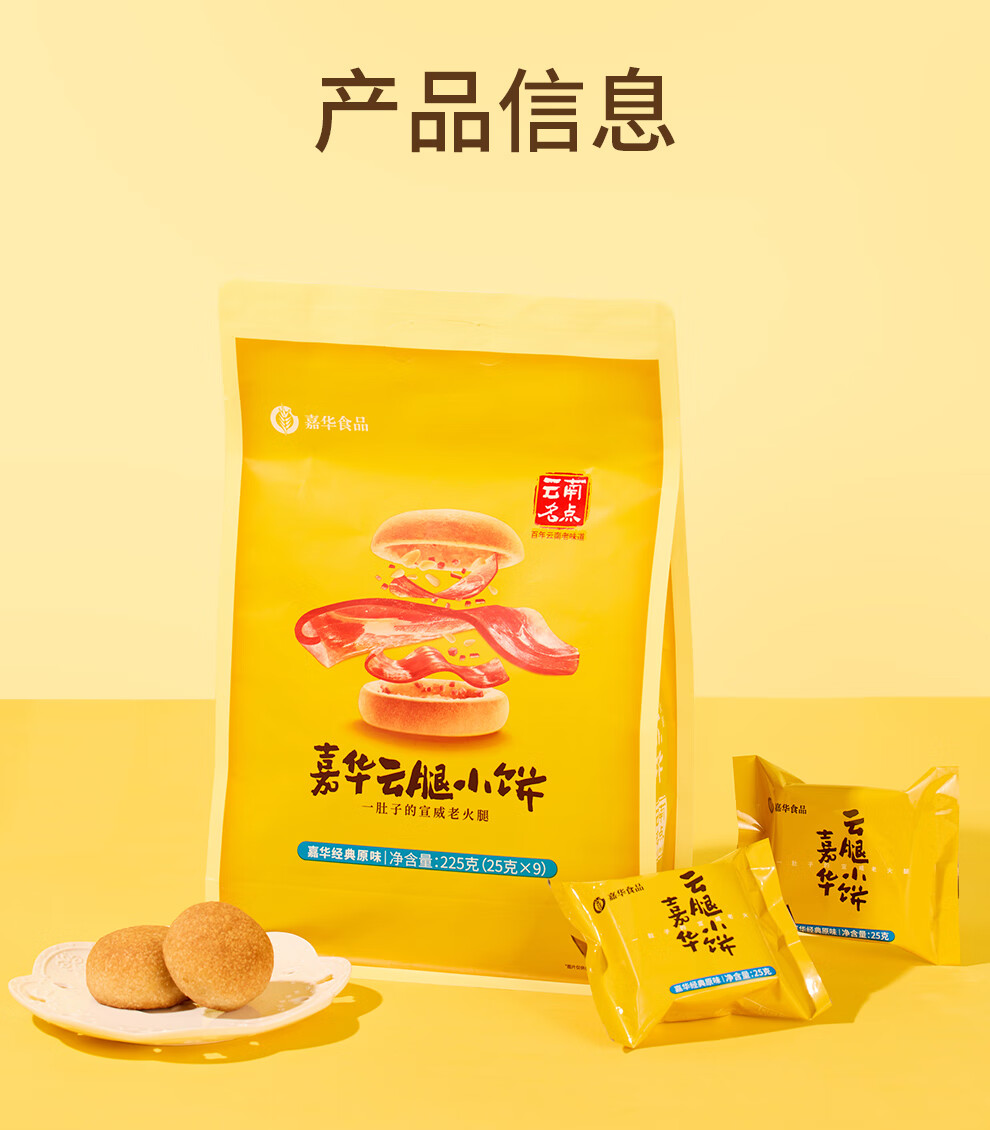 嘉华原味云腿小饼礼袋云南特产小吃零食糕点9枚225g
